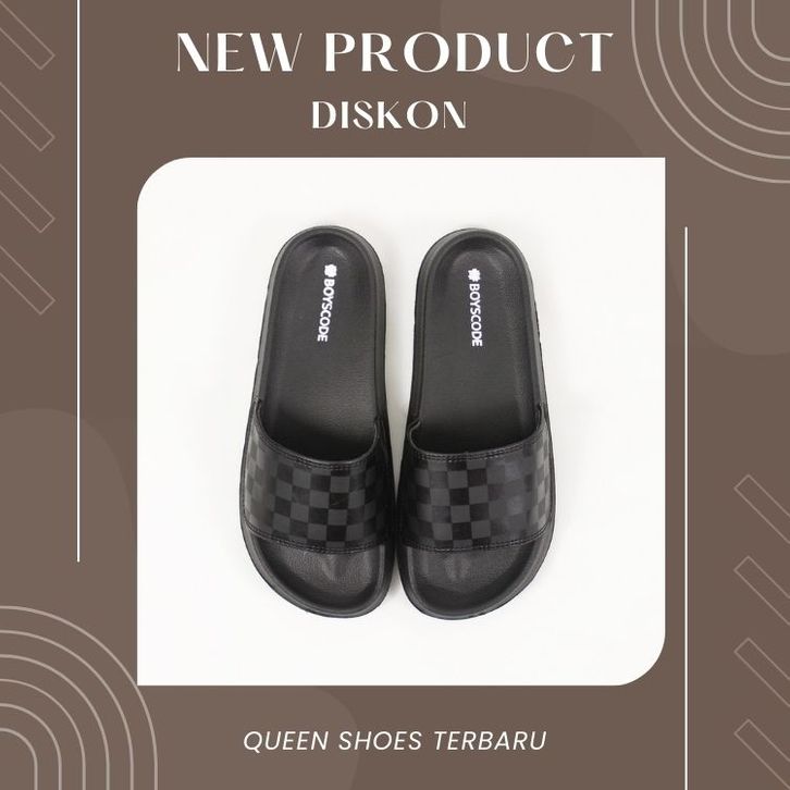 SENDAL SLIP ON PRIA DEWASA SELOP DISTRO FOOTWEAR ORIGINAL CATUR CHECKERBOARD FULL HITAM SANDAL SLIDE ANTI SELIP