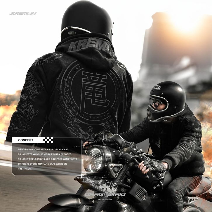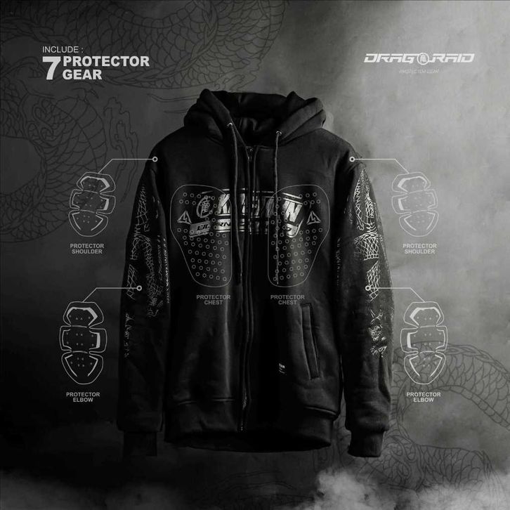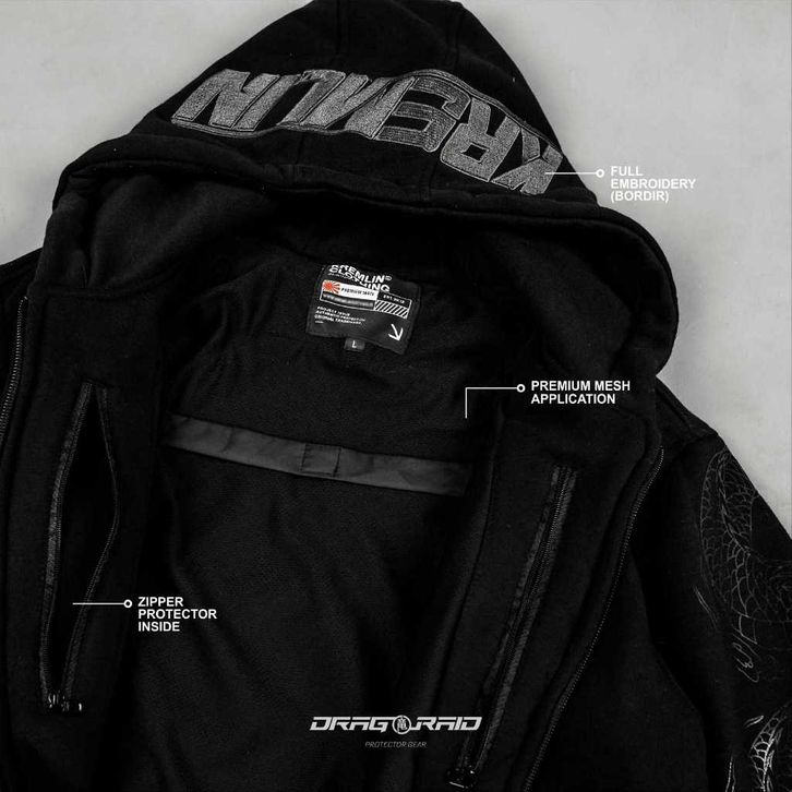 KREMLIN - Zipper Hoodie Bikers with 7-set Protector gear ORIGINAL - DRAGRAID JAKET MOTORAN PRIA WANITA TERBARU