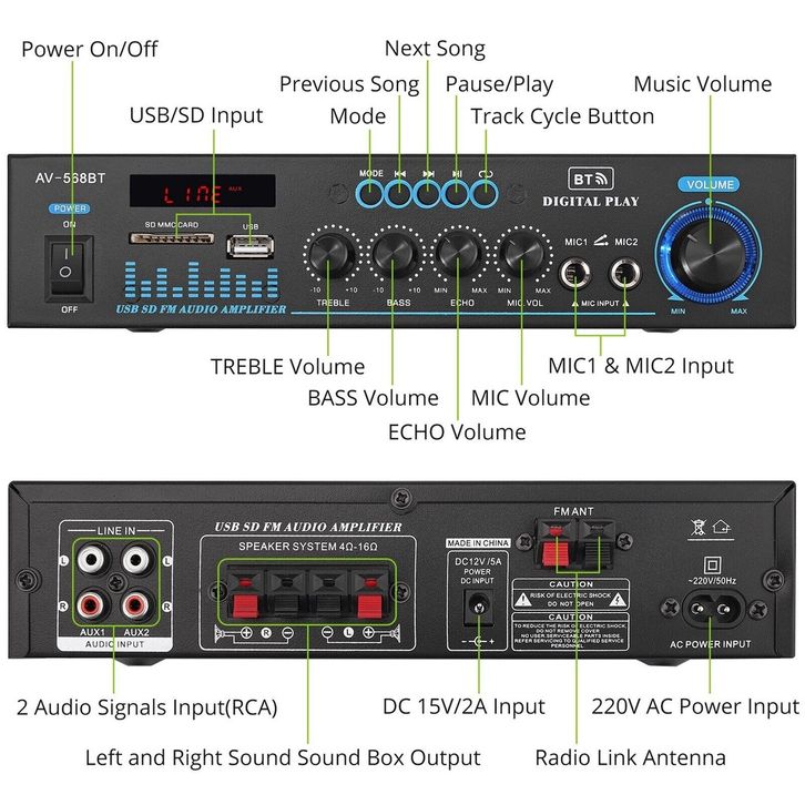 POWER AMPLIFIER SOUND SYSTEM/AMPLIFIER BLUETOOTH SUBWOOFER/POWER AMPLIFIER AV 568BT AMPLI STEREO KARAOKE USB TF FM RADIO