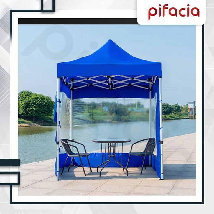 Tenda Jualan Bongkar Pasang Mika Tenda Bazar Jualan Dinding Tenda Lipat Outdoor Tebal Tembus Pandang Warna B-iru Merah