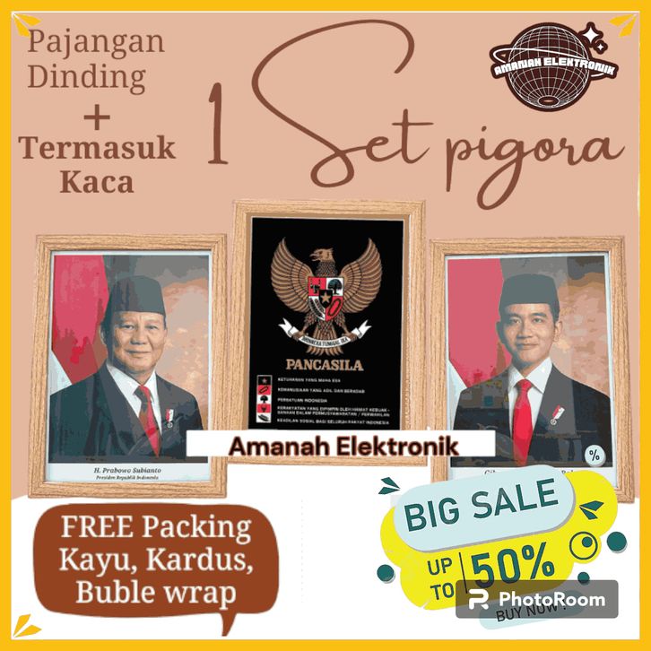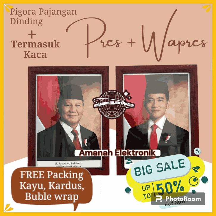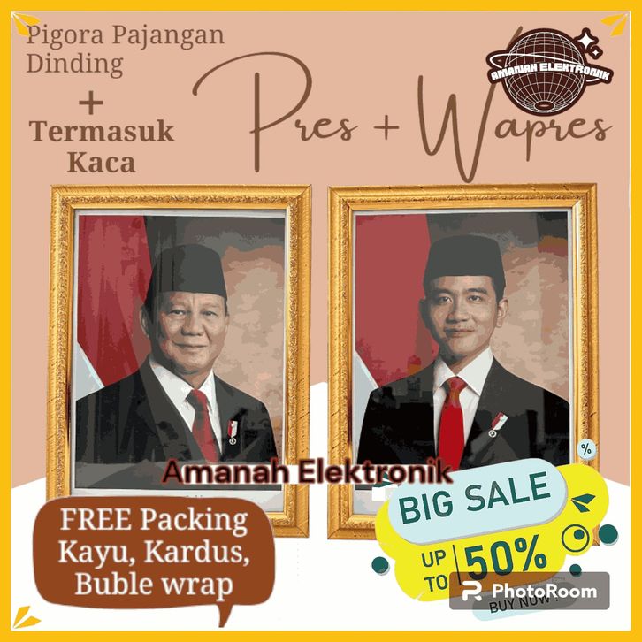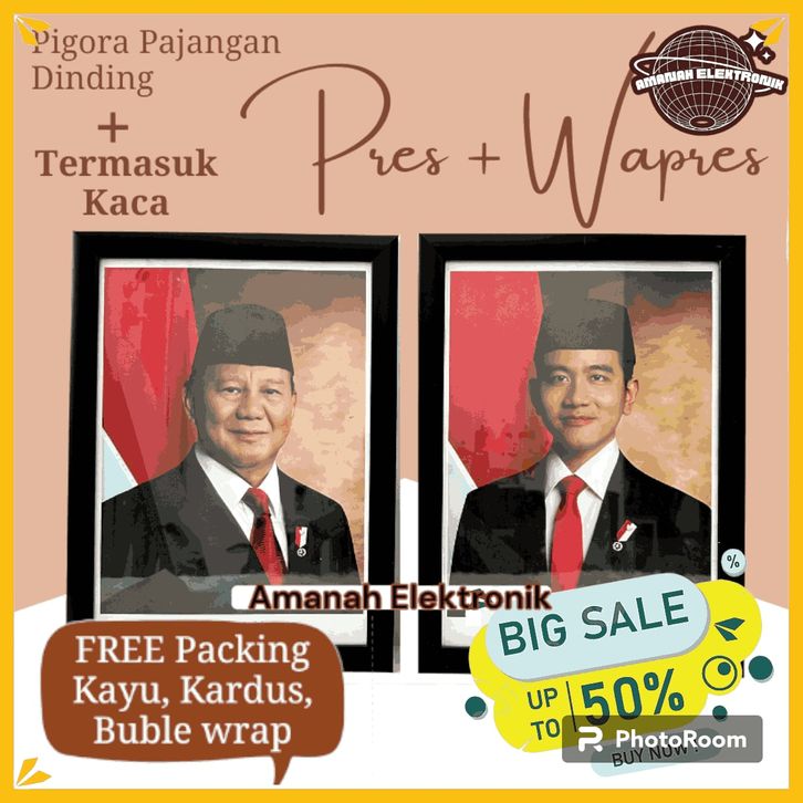 Termurah Foto Poster Presiden Prabowo Gibran Dan Wakil Indonesia Bingkai Terbaru 2024 Premium HD Official Cetak Pigura