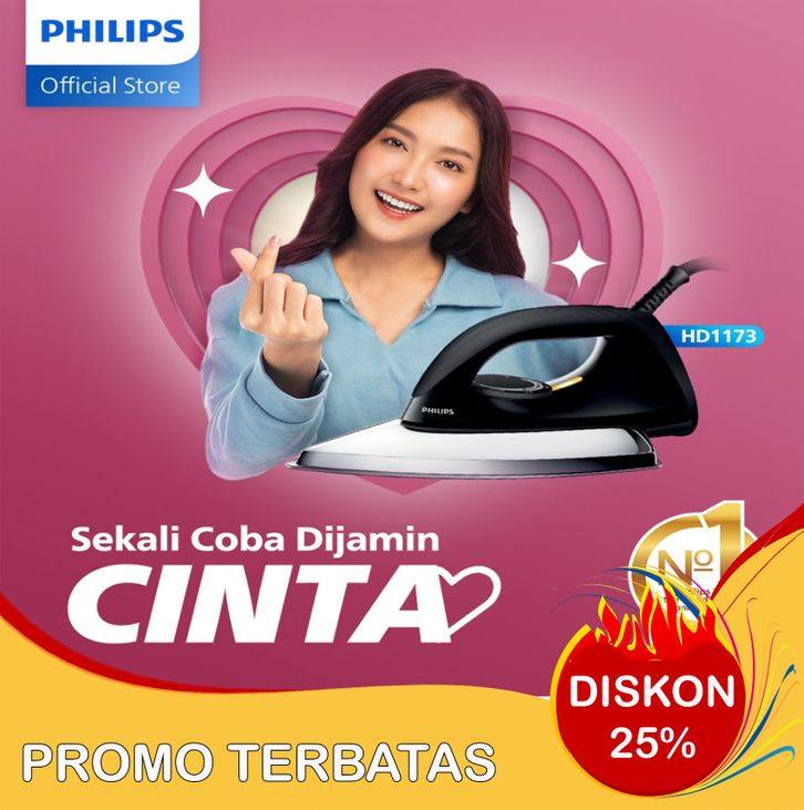 Philips Setrika kering HD1173/80 Hitam, Ceramic 4 Lapis, Anti-Lengket, seterika philips,gosokan baju