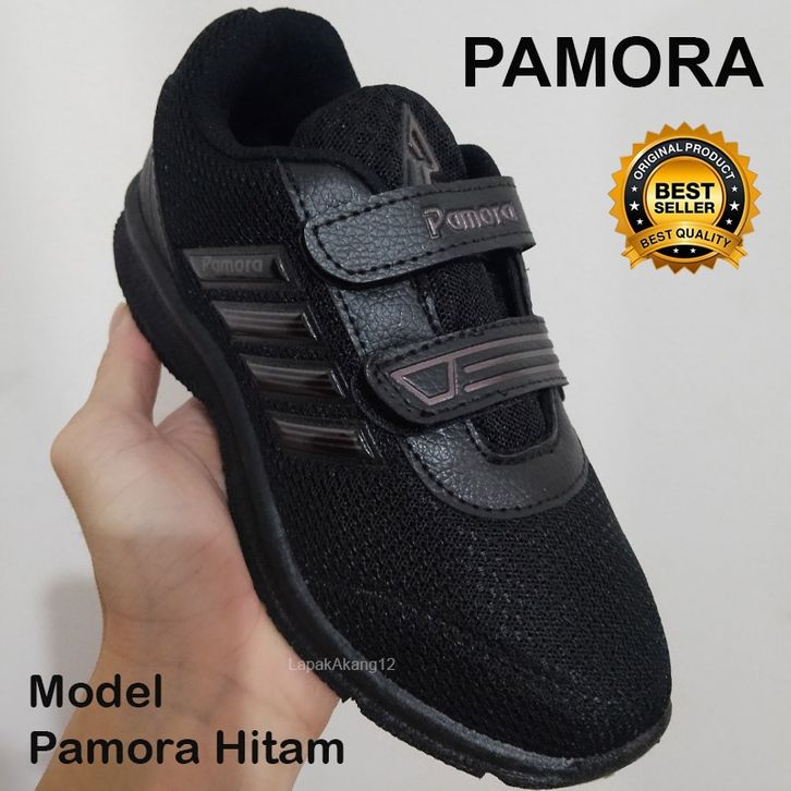 Sepatu Sekolah PRO ATT Hitam Polos Sepatu Sekolah Anak Laki Laki Dan Perempuan TK SD SMP Velcro Strap Ringan & Nyaman
