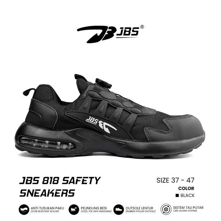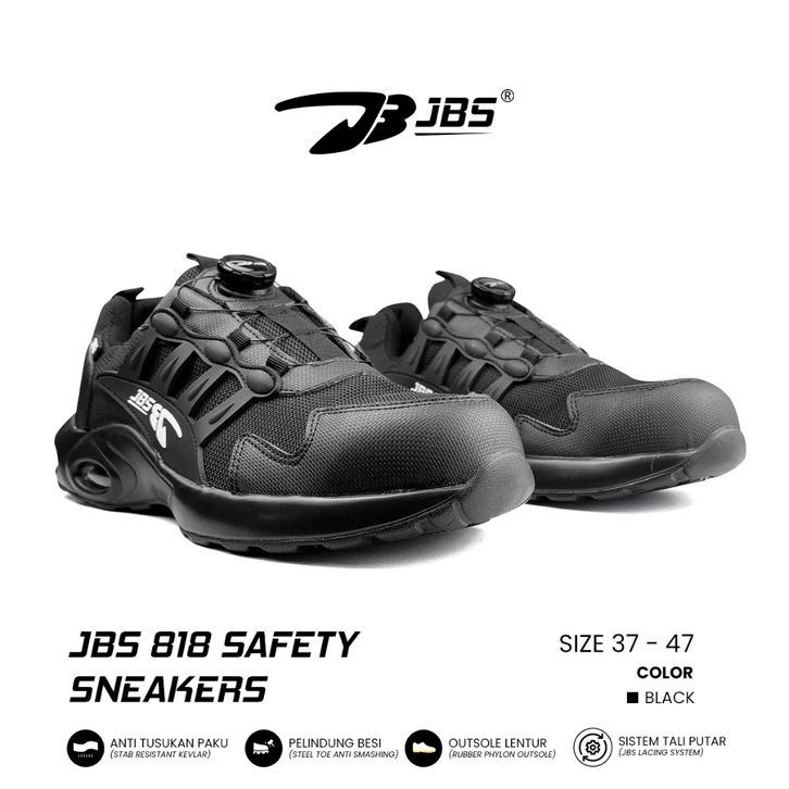 Sepatu Safety Sneakers Tali Putar JBS 818 / Sepatu Sneakers Safety Pelindung Baja Anti Tusuk Stab Resisten Kevlar