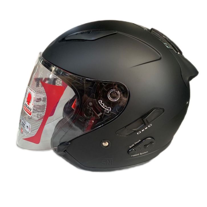 Helm Half Face KYT Galaxy Flat R Slide Solid Black Doff Double Visor Original Terbaru Standar SNI dan DOT