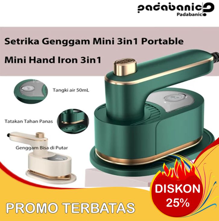 PADABANIC Setrika Uap Mini 3in1 Portable 6950 Hemat Energi | Setrika Listrik Mini yang Dapat Diputar 180 Derajat, Ramah