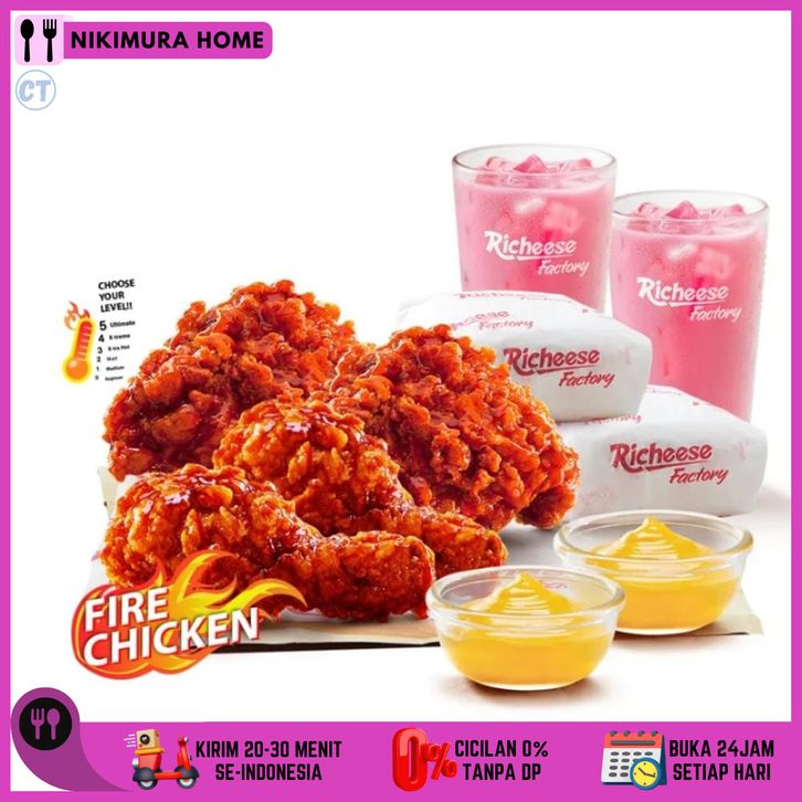 8 Fire Flying Chick, 4 Nasi, 4 Minum, Cheese Sauce, 4 Fire Flying Chick, 2 Nasi, 2 Minum, Cheese Sauce, 1 Ayam Utuh (spicy/non spicy), 3 Nasi, 3 Minum, tambahan ongkir, Spicy Smoky Friend Fries, 1 Fire Chicken + 1 Nasi + 1 Medium Pink, 2 Fire Flying Chick + 1 Nasi + 1 Med Pink, 5 Fire Chick + 3 Nasi + 3 Minum, 4 Fire Wings + 1 Nasi + 1 Minum, 5 Fire Flying Chick + 3 Nasi + 3 Minum, 1 Fire Flying Chick + 1 Rich Burger Chick, 1 Fire Smoke Chick + 1 Nasi + 1 Minum + 1Cheese sc, 8 Fire Chicken, 4 Nasi, 4 Minum, Cheese Sauce, 4 FIre Chicken + 2 nasi + 2 MInum + Cheese Sc