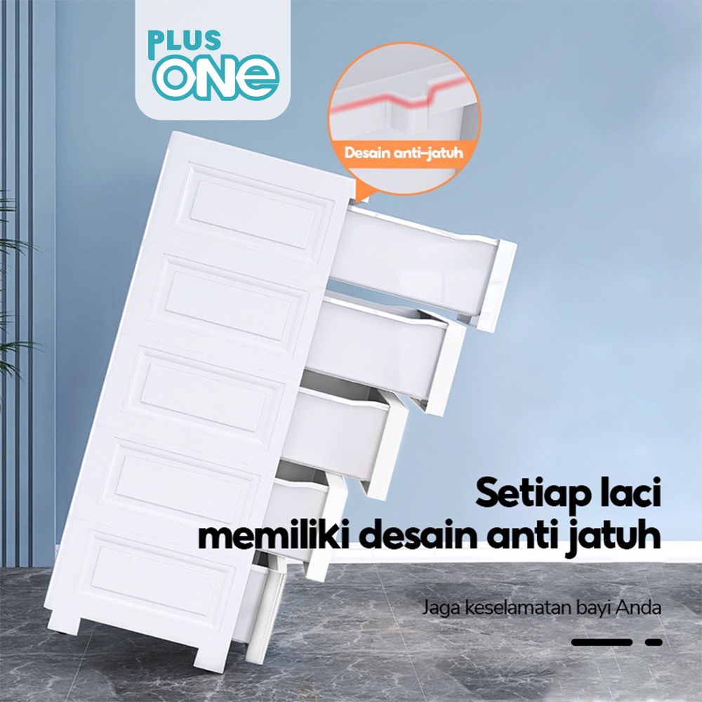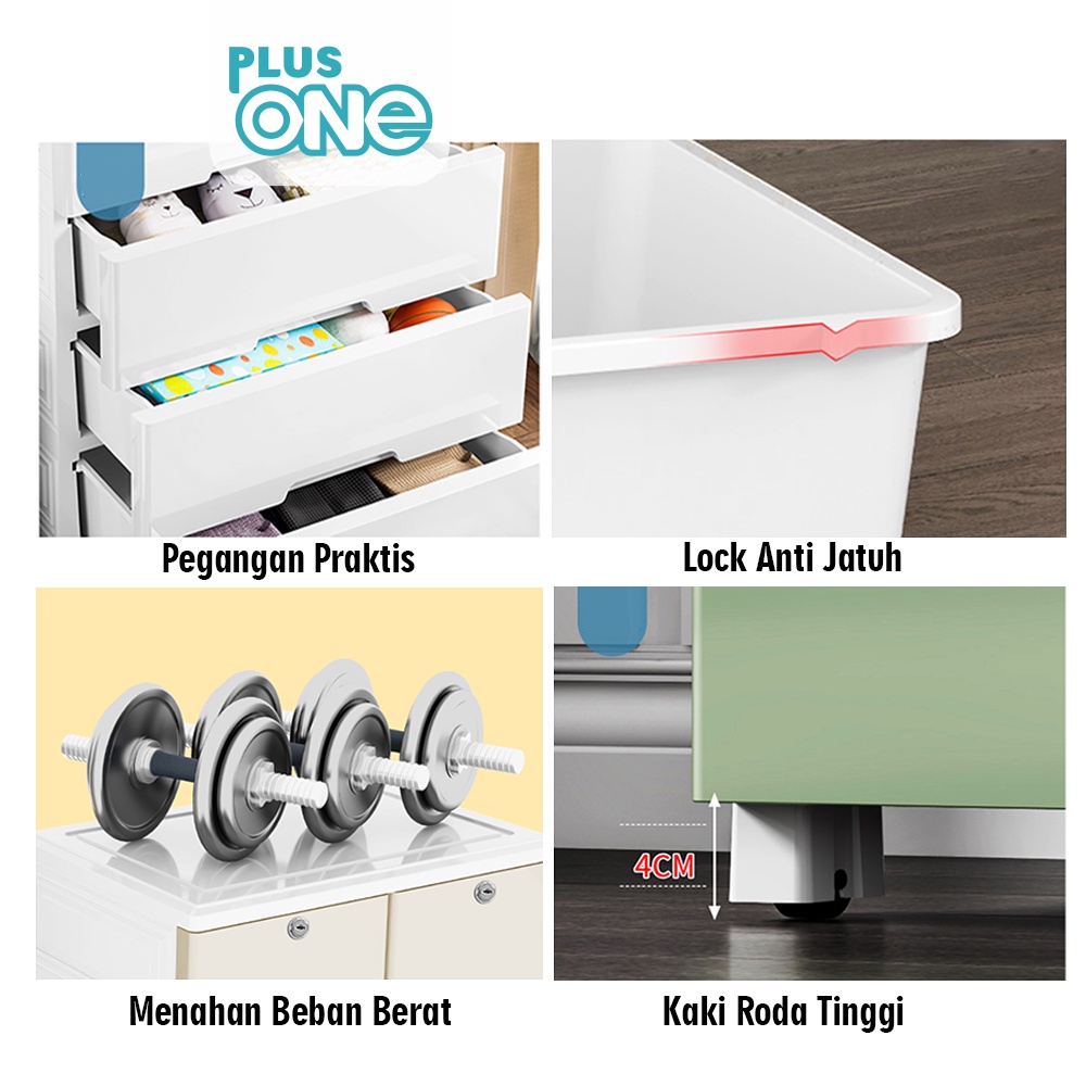 Plus One - Lemari Plastik Roda 2 Laci Atas - 34567 Susun / Tingkat Anak Ukuran Jumbo - 1289