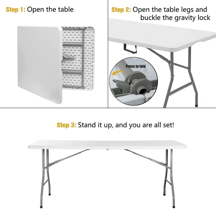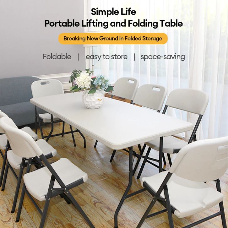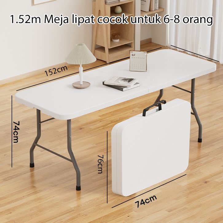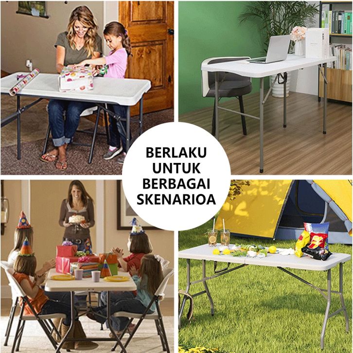 Meja lipat portable 1.2/1.5/1.8M Meja Jualan Outdoor/Indoor Plastik Kuat & Ringan Serbaguna untuk Makan/Kerja/Belanja