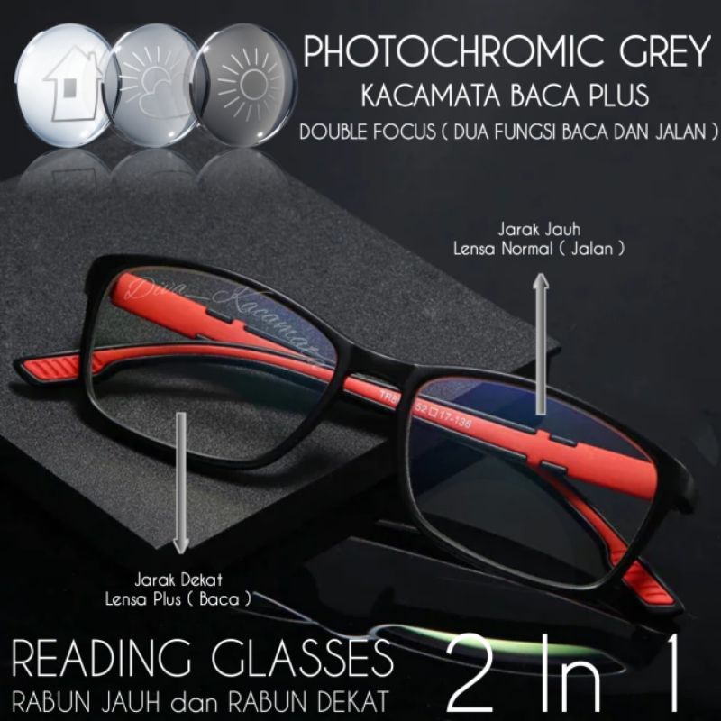 Kacamata Baca (kryptok) Plus Photochromic Antiradiasi Pria/Wanita | Kacamata Baca Dan jalan kacamata normal buat Jalan |