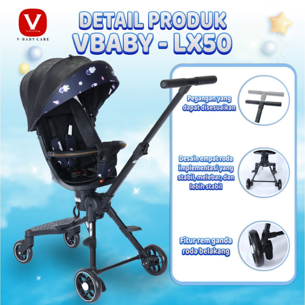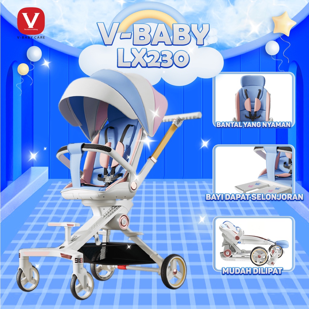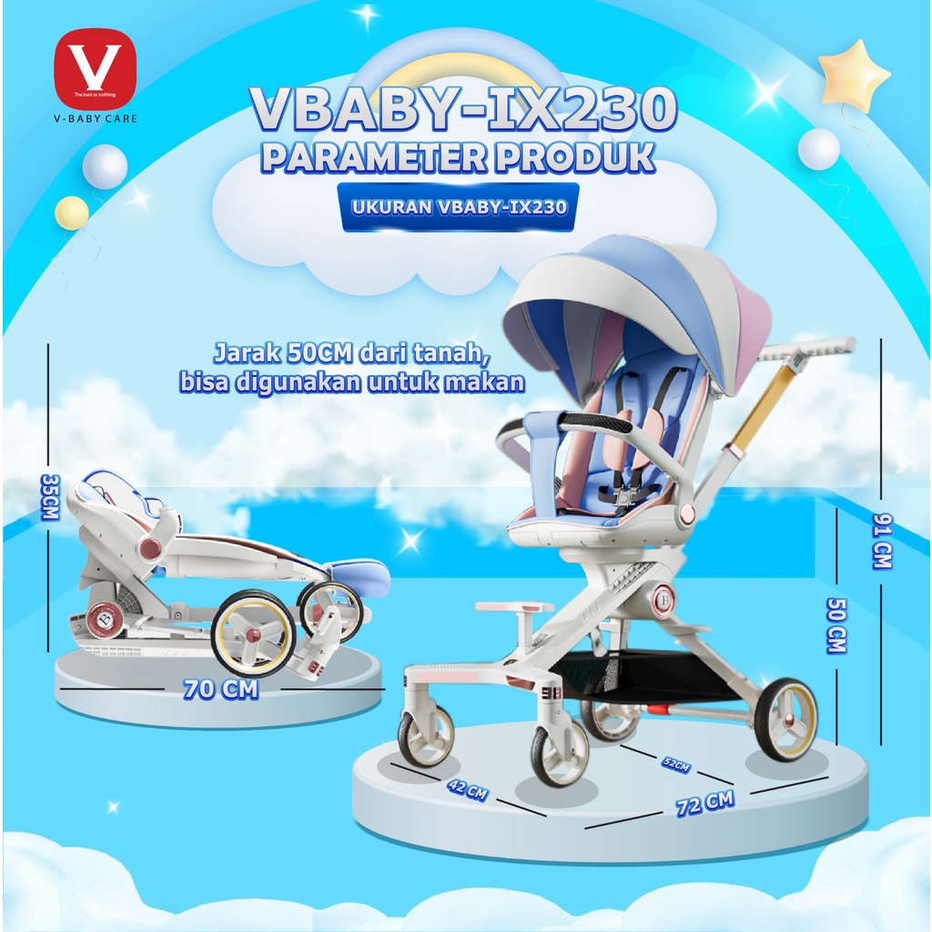 stroller bayi dua arah / kursi dorong anak dua arah / Magic Stroller Baby 2-way Travel Lightweight Foldable V-BABYCARE