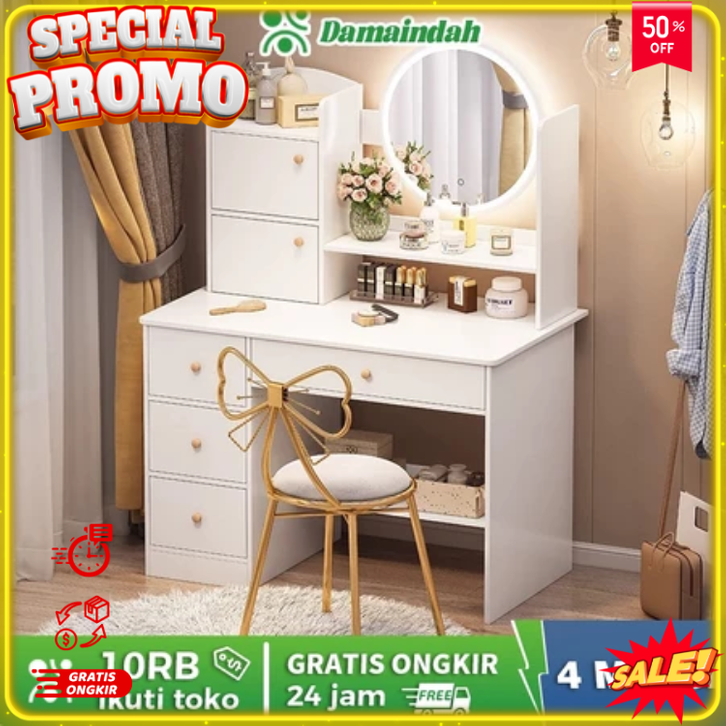 meja belajar anak berkualitas Damaindah Set Meja Rias Kursi Pita Meja Rias Set Bangku Meja Rias Lampu LED Meja