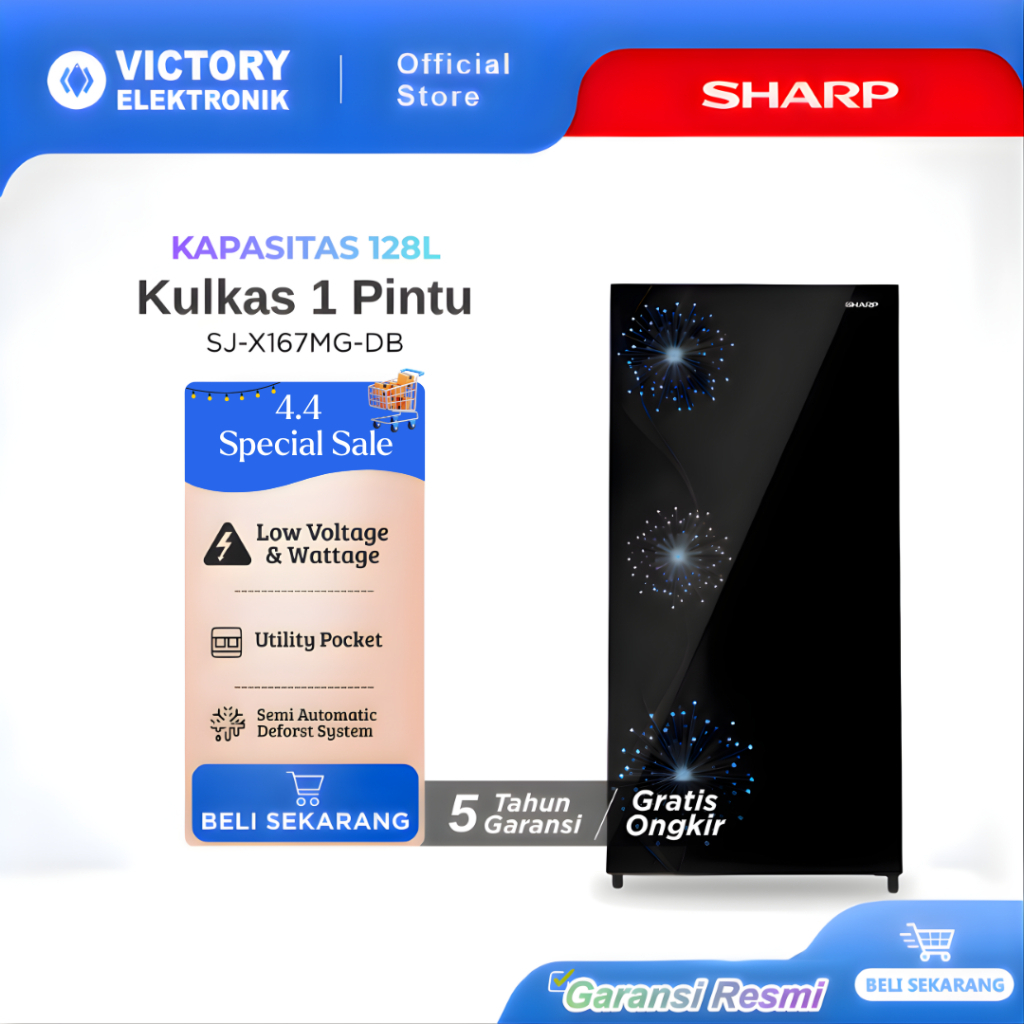 kulkas sharp 1 pintu 128 Liter SJ-X167MG-DP/DB, Shine Dandelion Series