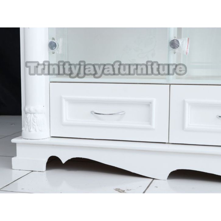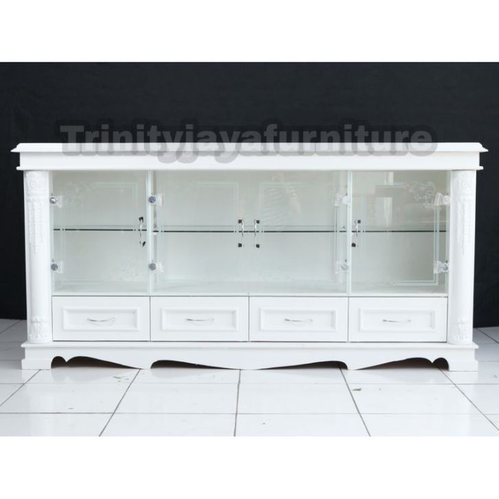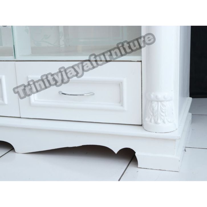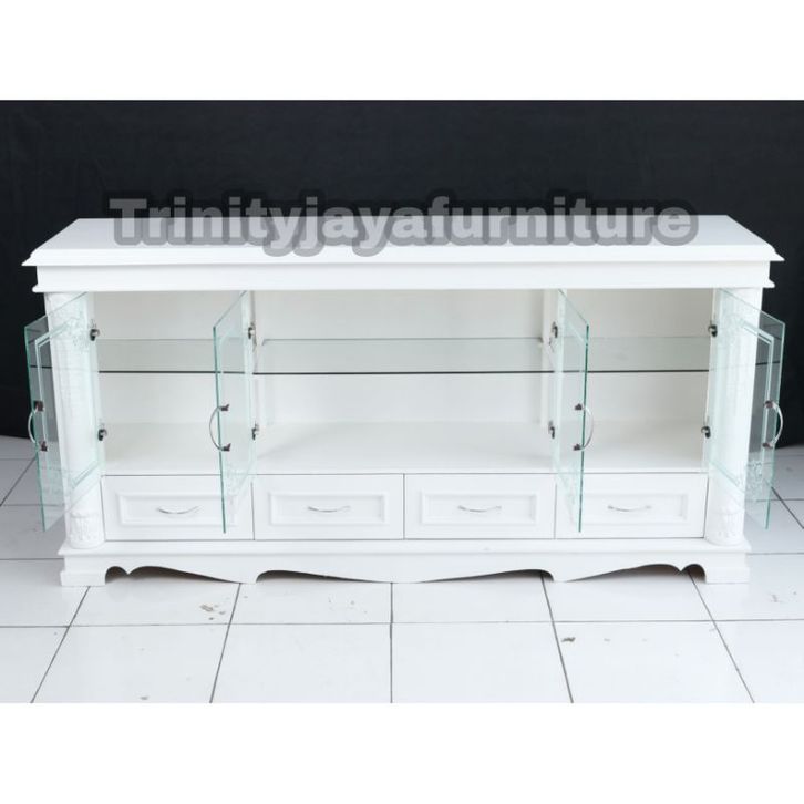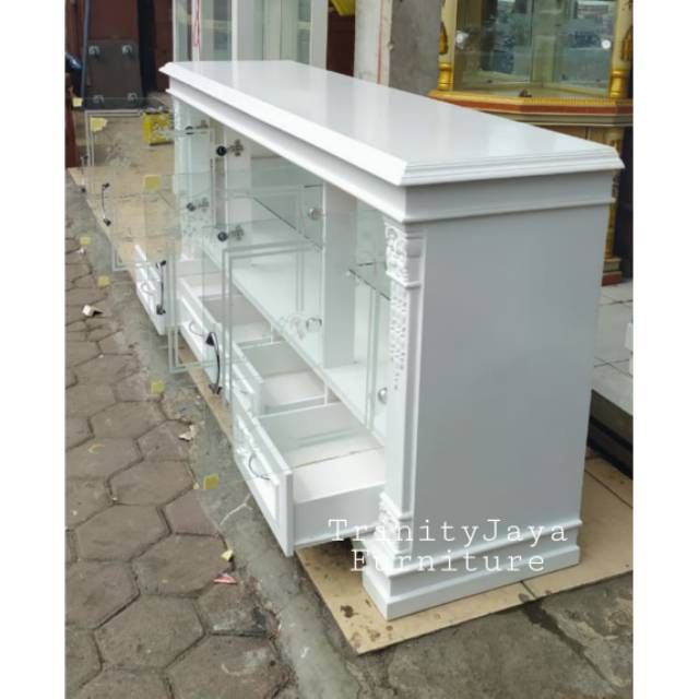 Meja Tv Diswar Klasik Putih Kayu