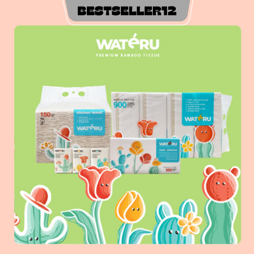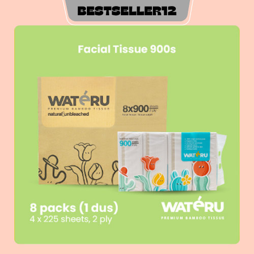 Tissue Bambu Facial Premium - Wateru 900s, 8 packs, 4 x 225 Natural & Unbleached sheets BT09