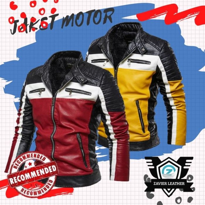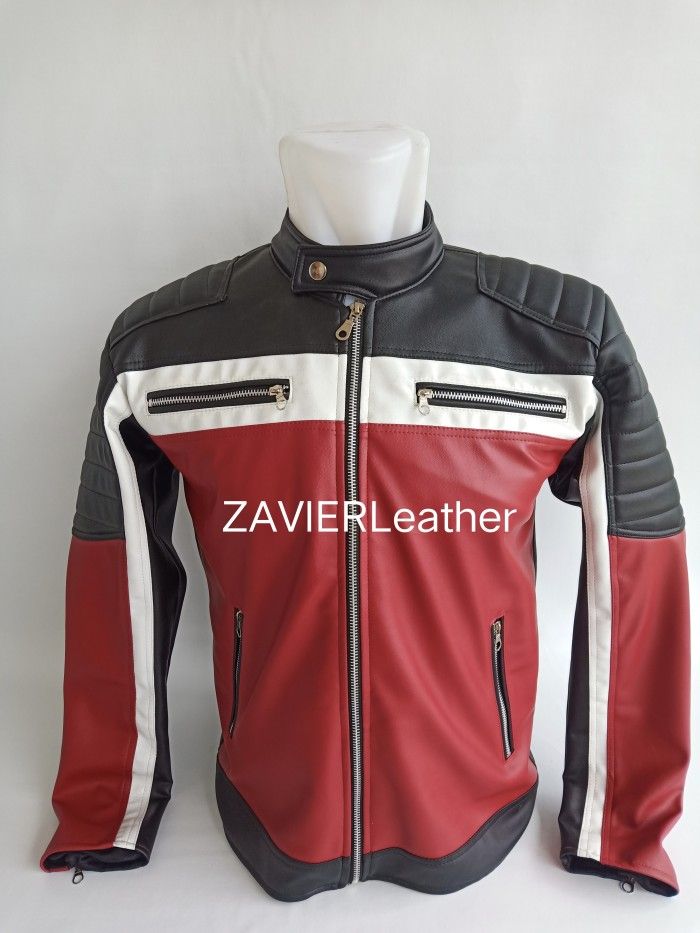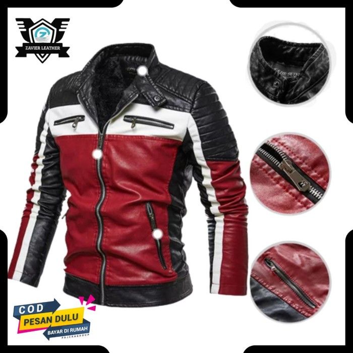 jaket pria/jaket motor pria semi kulit/jaket club kulit sintetis - M Hitam Merah
