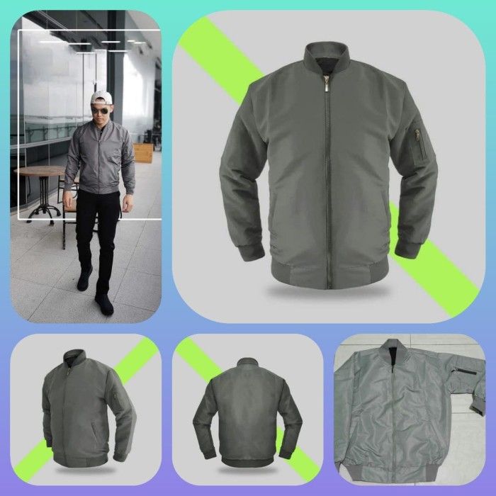 Grey Jaket Bomber Pria Men Jacket Fashion Outerwear -9rey S