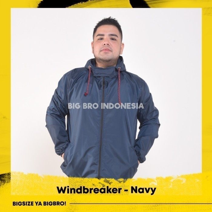 Jaket Windbreaker Parasut Basic Pria Bigsize BigBro Jumbo Ukuran Besar - Navy XL