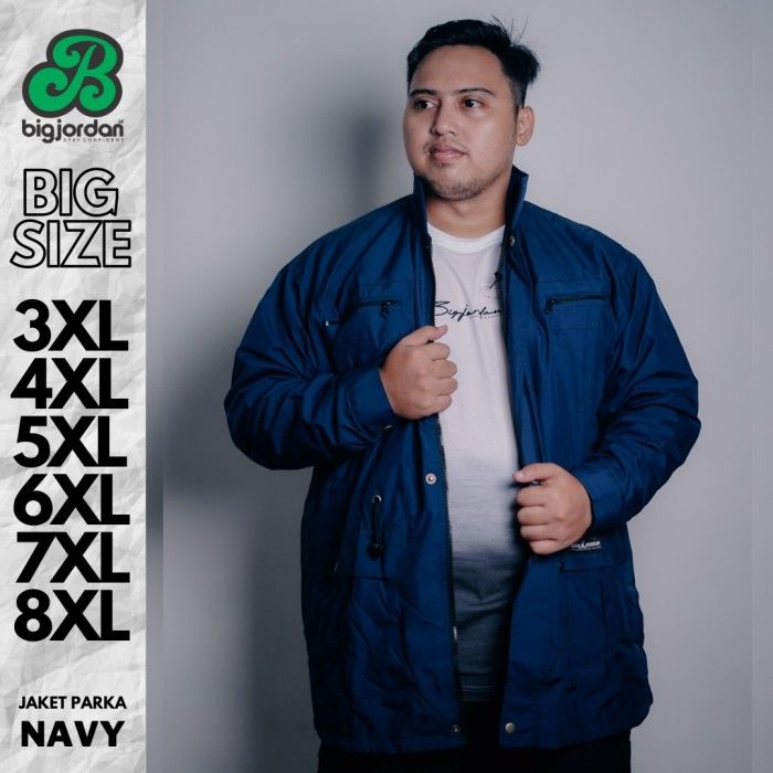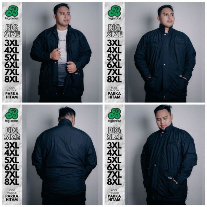 jaket parka pria parasut big size jumbo XXXL XXXXL 5XL 6XL 7XL 8XL - Hitam 3xl