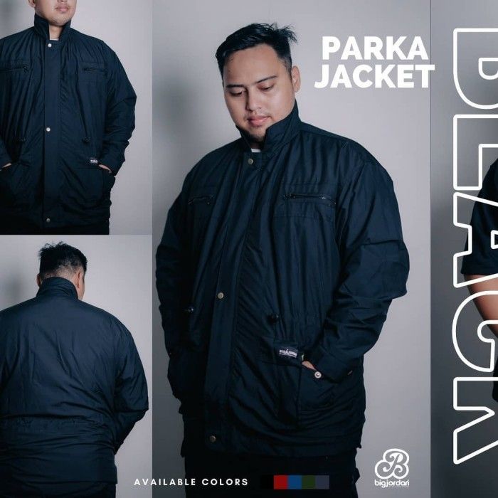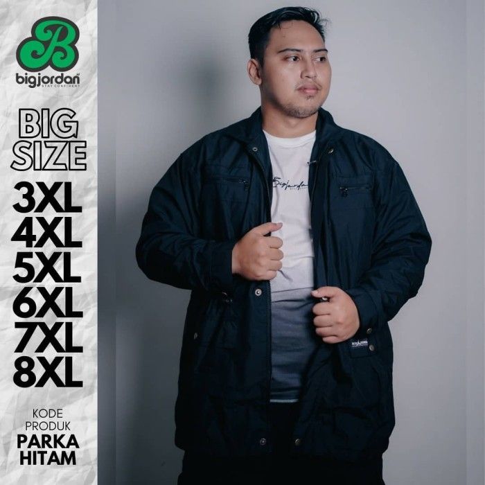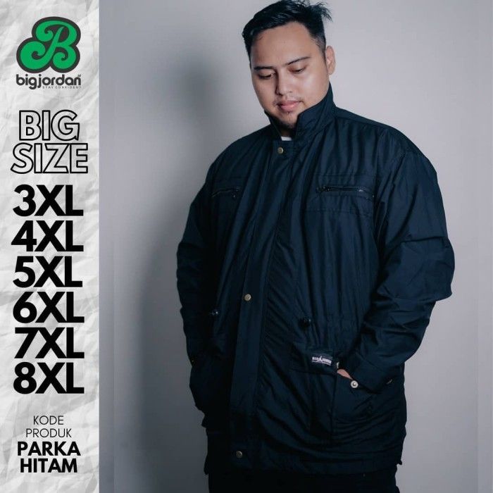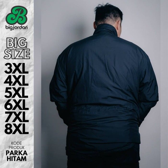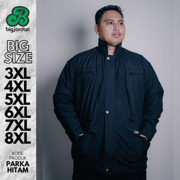 jaket parka parasut pria jumbo big size xxxl 4xl 5xl 6xl 7xl 8xl hitam - Hitam XXL