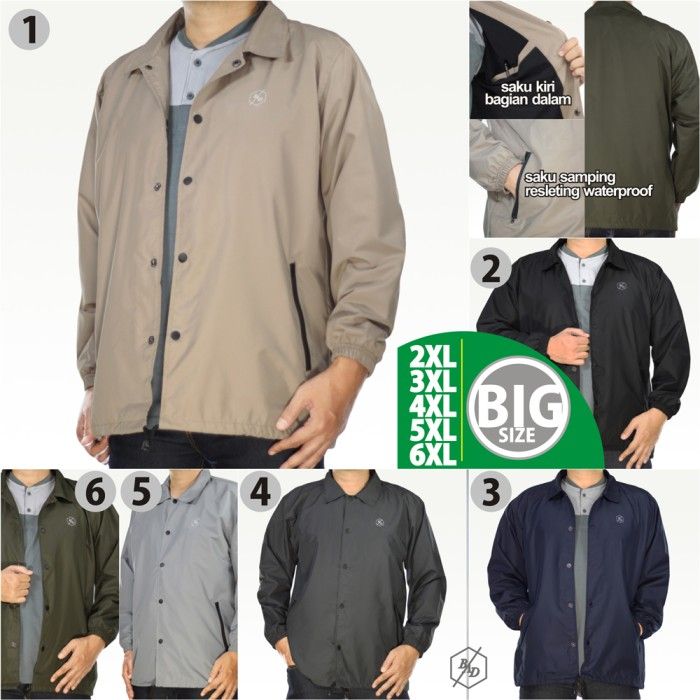 Jaket Pria Coach Polos Big Size Jumbo Parasut Jacket Motor Waterproof - Hijau 6XL
