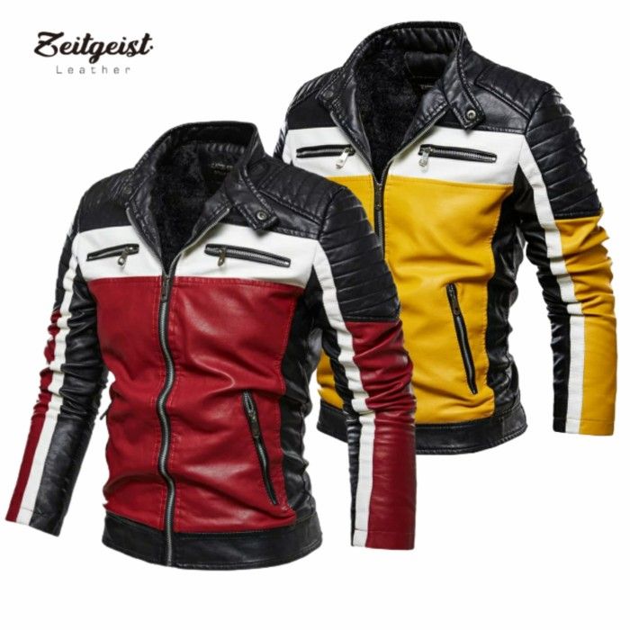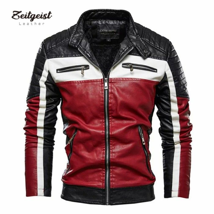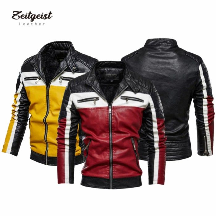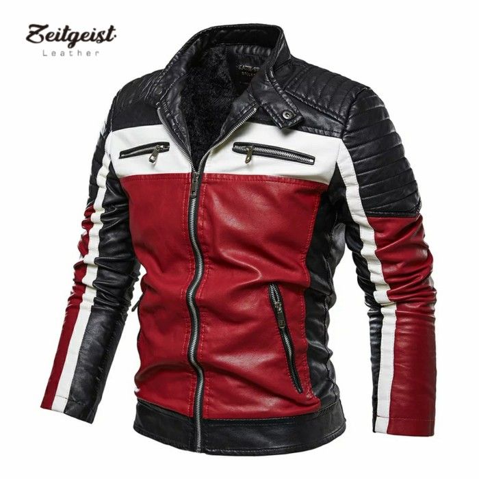 Jaket Motor Jaket Kulit Pria Racing Touring Original Zeitgeist - Merah L