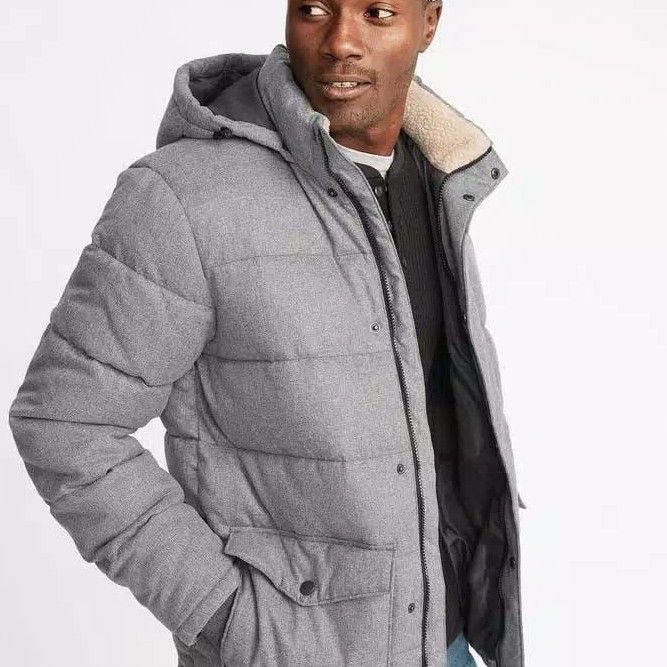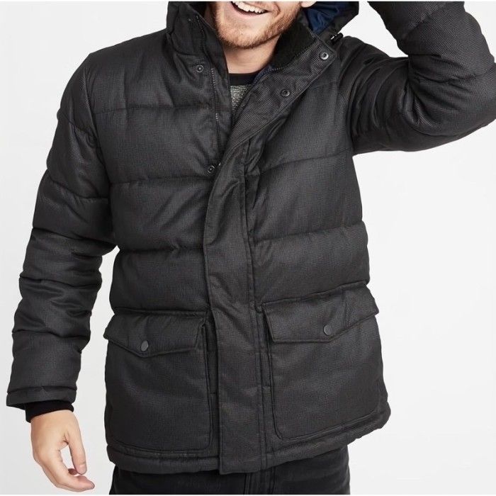 Jaket Pria Old Navy Mens Detachable Hood Puffer Jacket - Black XS