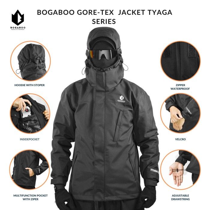 BOGABOO JACKET GTX 3 LAYER TYAGA WATERPROOF Pria Wanita - Jaket Anti - ABU ABU M