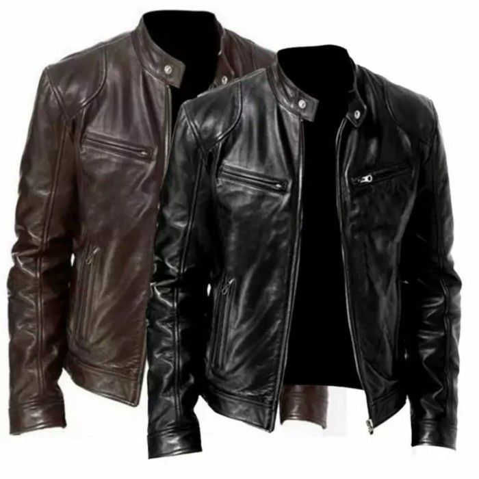 jaket kulit racing pria motor asli kulit domba kualitas super - Hitam S