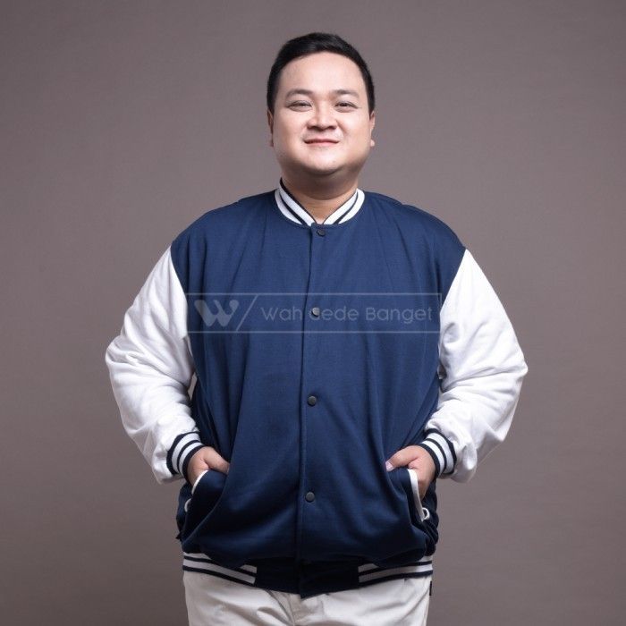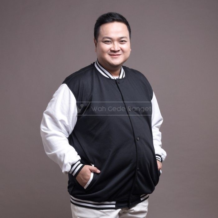 WGB Jaket Bomber Varsity Black White Pria Bigsize Besar Jumbo XXL XXXL - BLACK XL