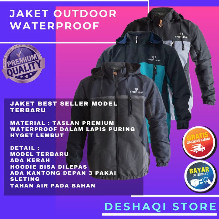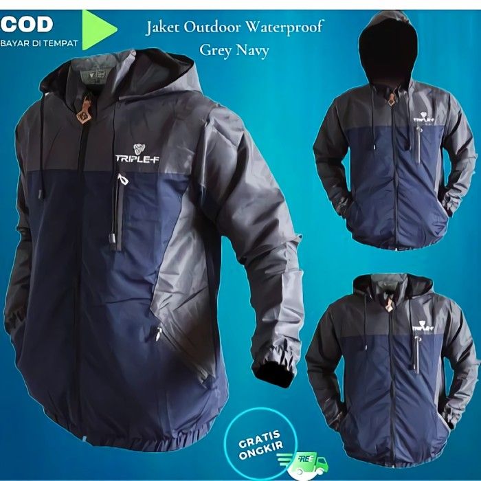 JAKET OUTDOOR WATERPROOF / JAKET PRIA / JAKET TRIPLE F - BLACK9rEY L