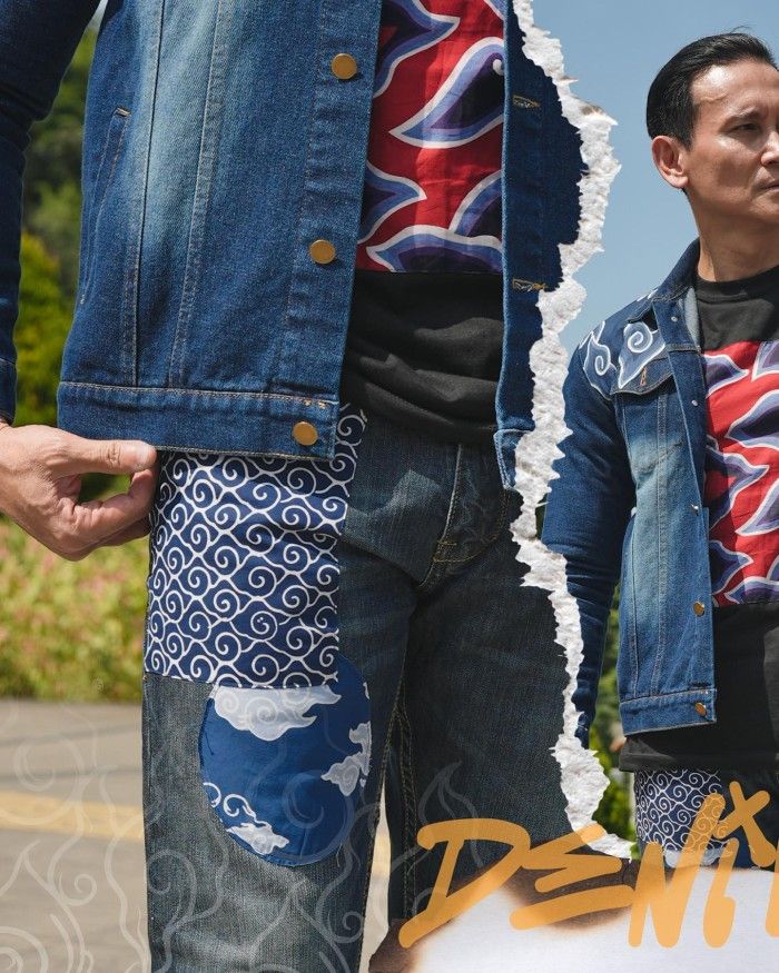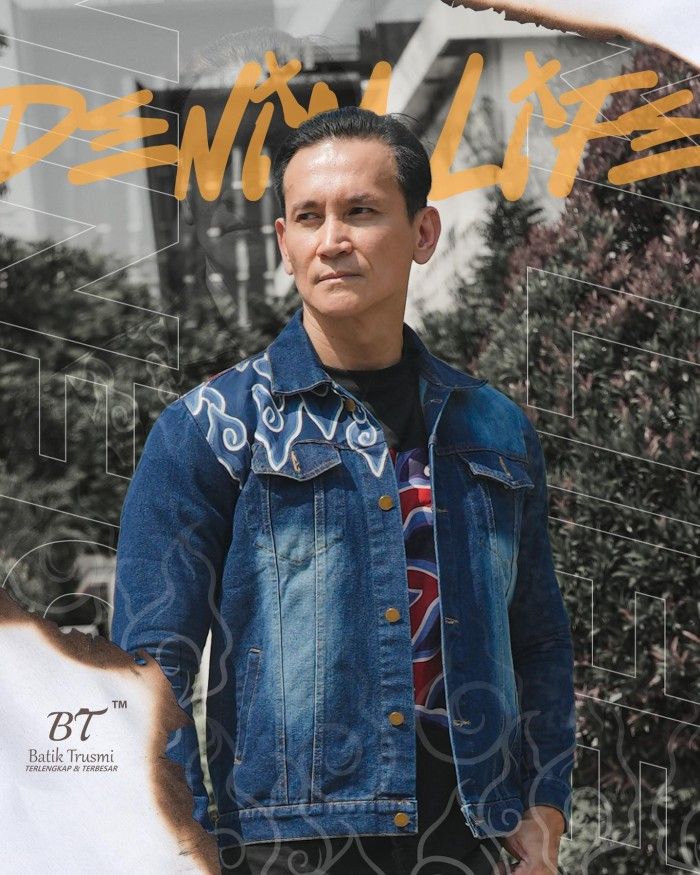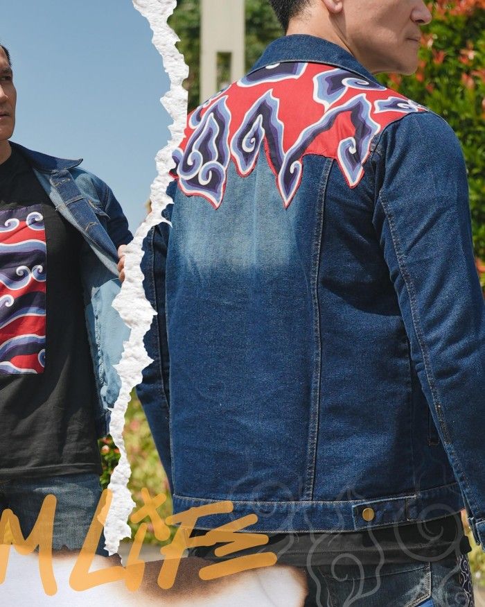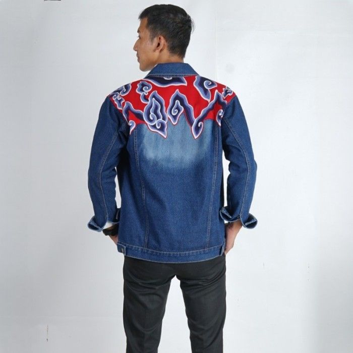 BATIK TRUSMI Jaket Denim Pria Motif Batik Mega Mendung BT SSM - L