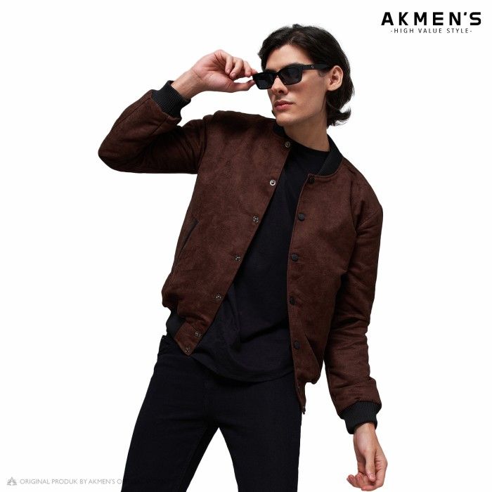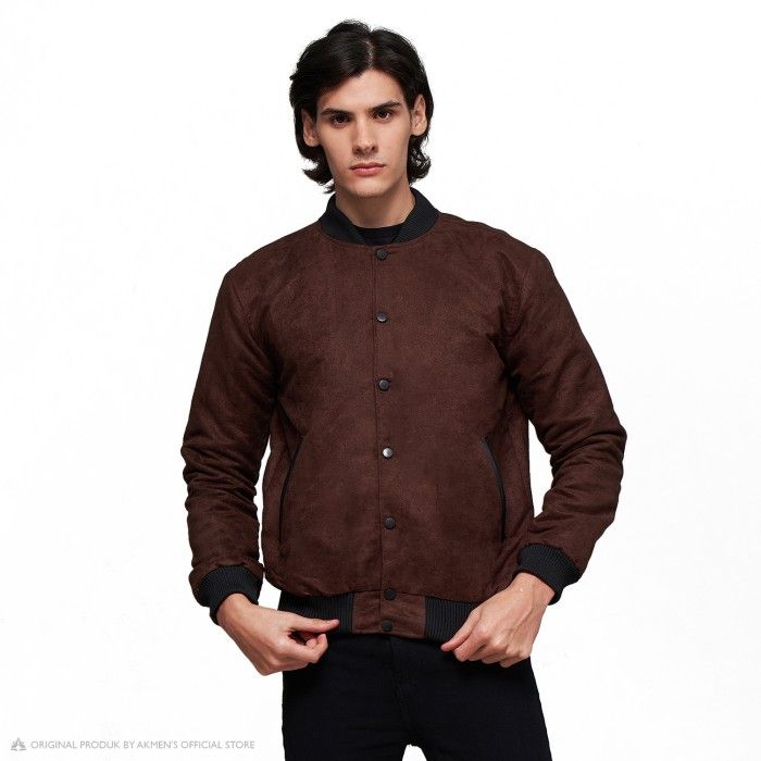 AKMEN’S Jaket Pria Bomber Suide Original Premium Warna Dark Brown - XL