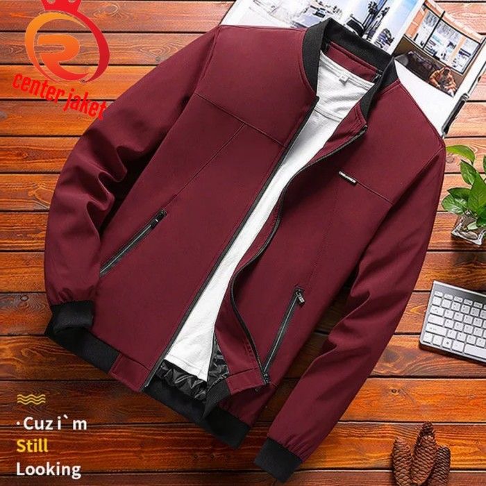 Jaket formal pria katun berkualitas - jaket pria bomber - Jaket casual - Marun S