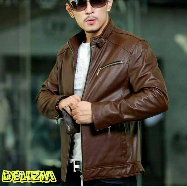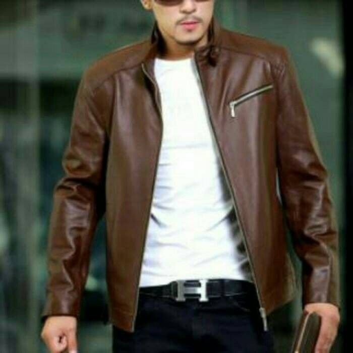 jaket kulit pria coklat semi leather - DARKBRWON XXL