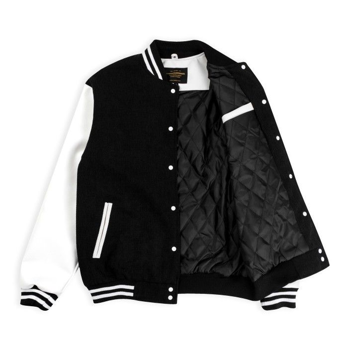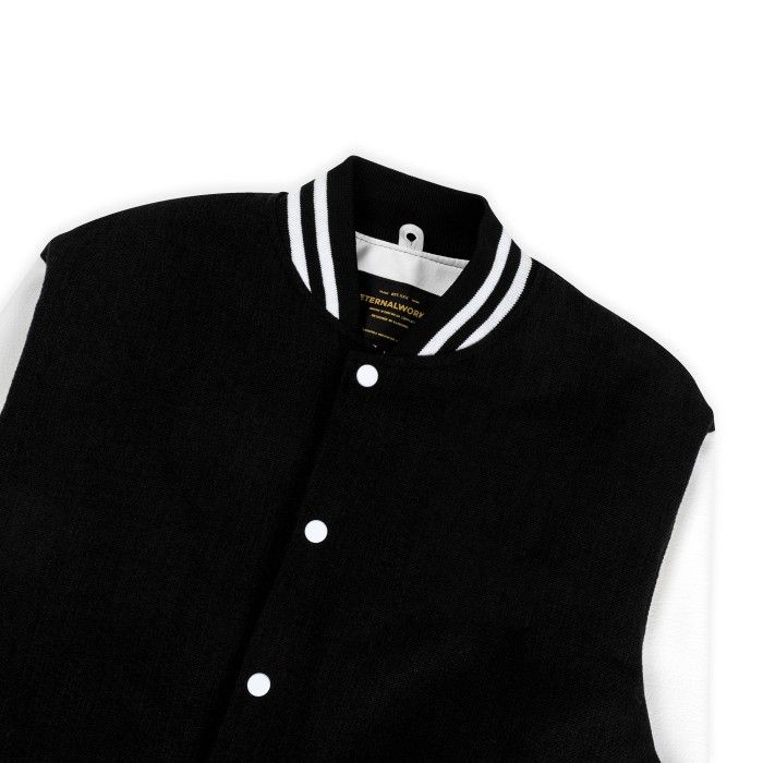 JAKET PRIA - ETERNALWORKS VARSITY JACKET BLACK WHITE JAKET VARSITY - L