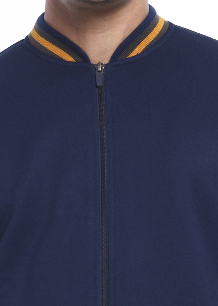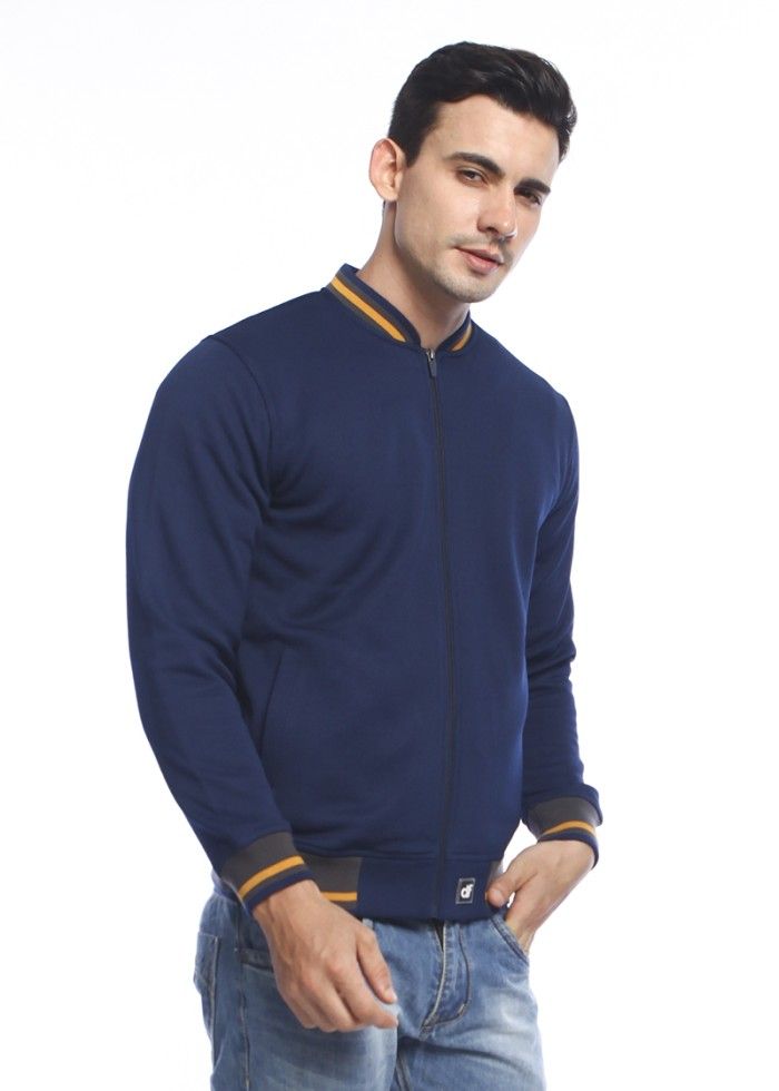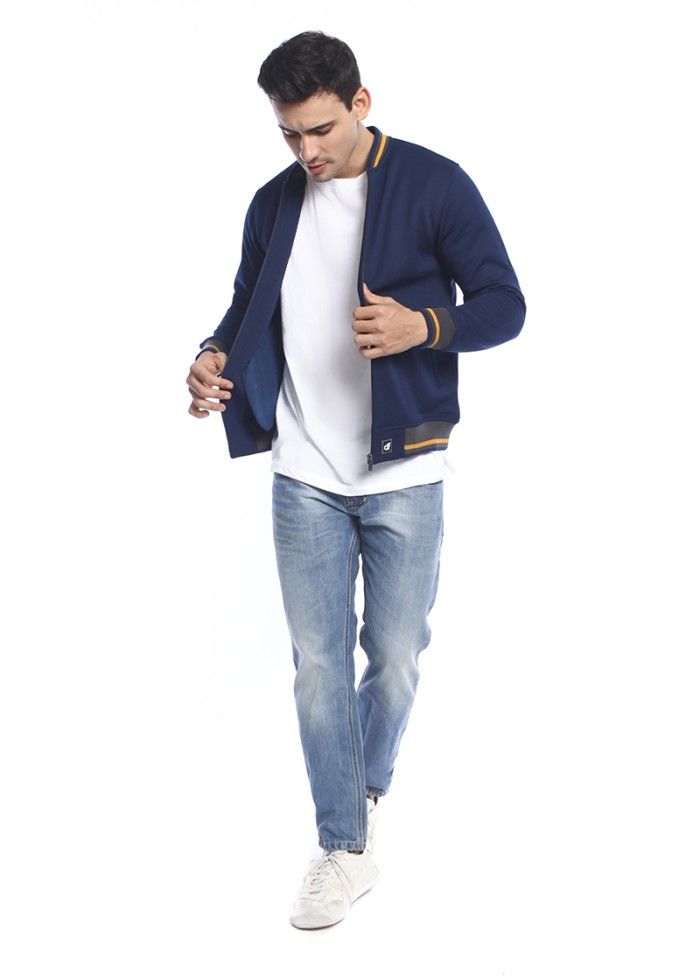 d&f Jaket pria Bomber with mustard strip - Navy - M
