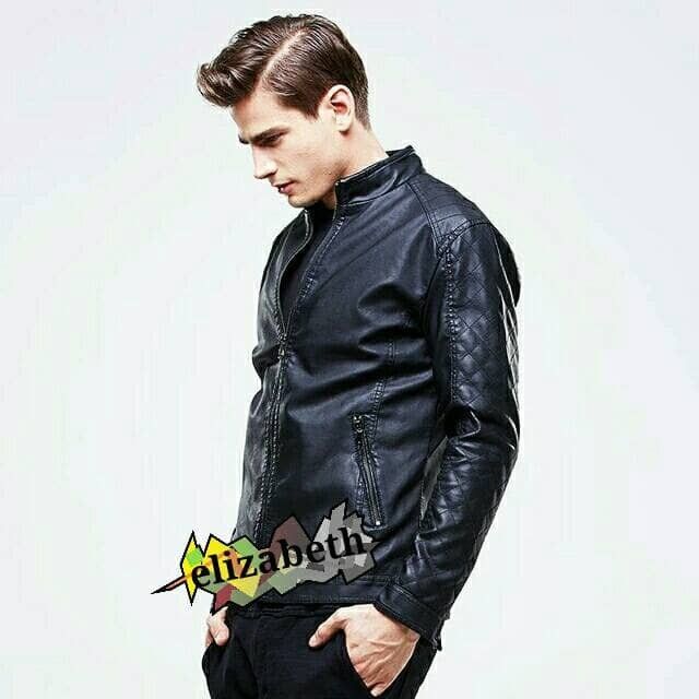 JAKET SEMI KULIT PRIA/JAKET KEREN/JAKET MOTOR/JAKET POPULER - Hitam S