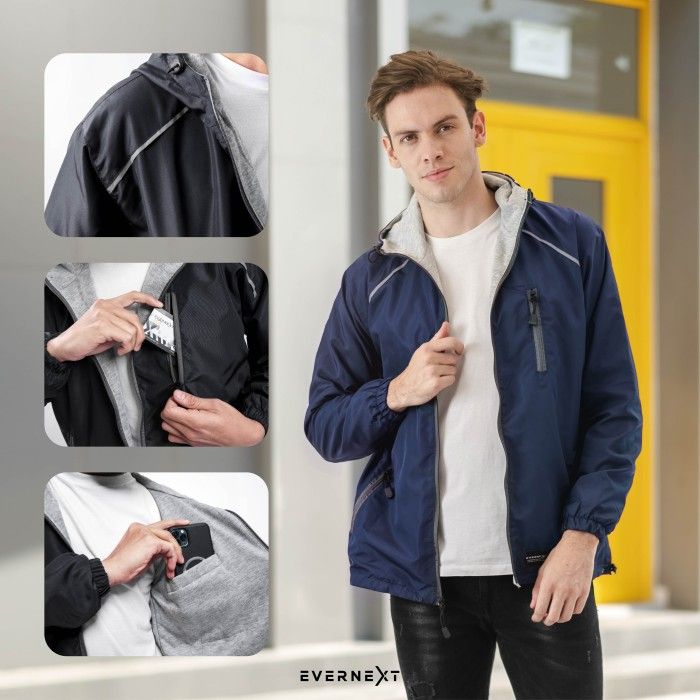 Jaket Cowok Parasut Pria Jaket Hoodie Pria Jaket Motor Jaket Outdoor - NAVY XL