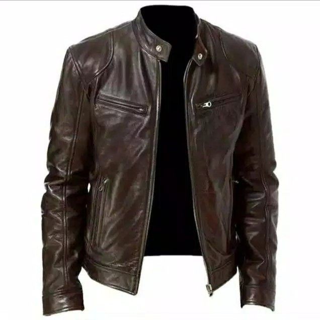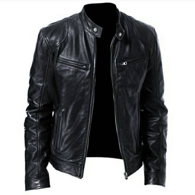 jaket kulit pria asli M0Del casual - Hitam M