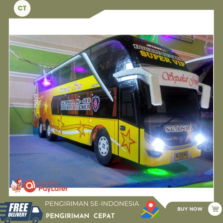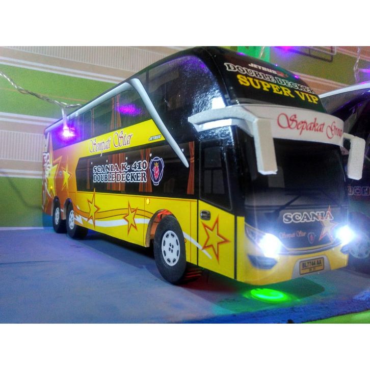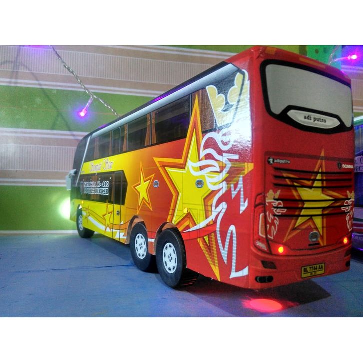 Mainan Bus Telolet Miniatur Bus Bis Sempati Star Double Decker Lampu Roda Berputar Panjang 38cm X 8cm X 12cm