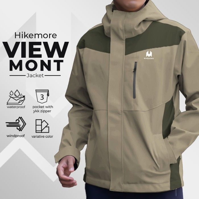 Jaket Pria Wanita Windbreaker Outdoor Hikemore Viewmont - Army Cream XL
