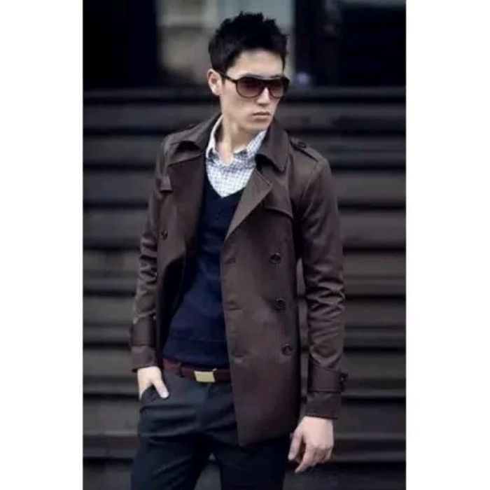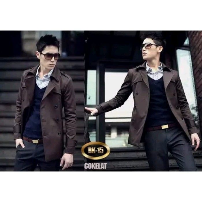 long coat pria casual style korea/jaket blazer panjang keren - Cokelat S