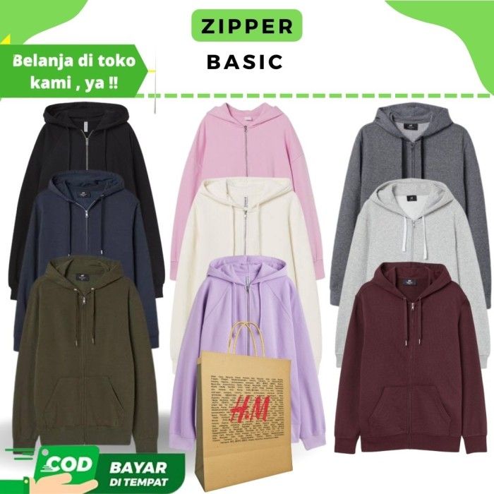 Zipper Hoodie Jacket H&M PRIA WANITA BASIC BLACK | NAVY |9rEY MISTY - Pink M