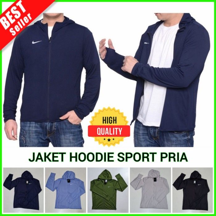 NIKE Jaket Mesh Hoodie SPORT Anti UV Pria OlahRaga Training Sepeda Gym - Navy L