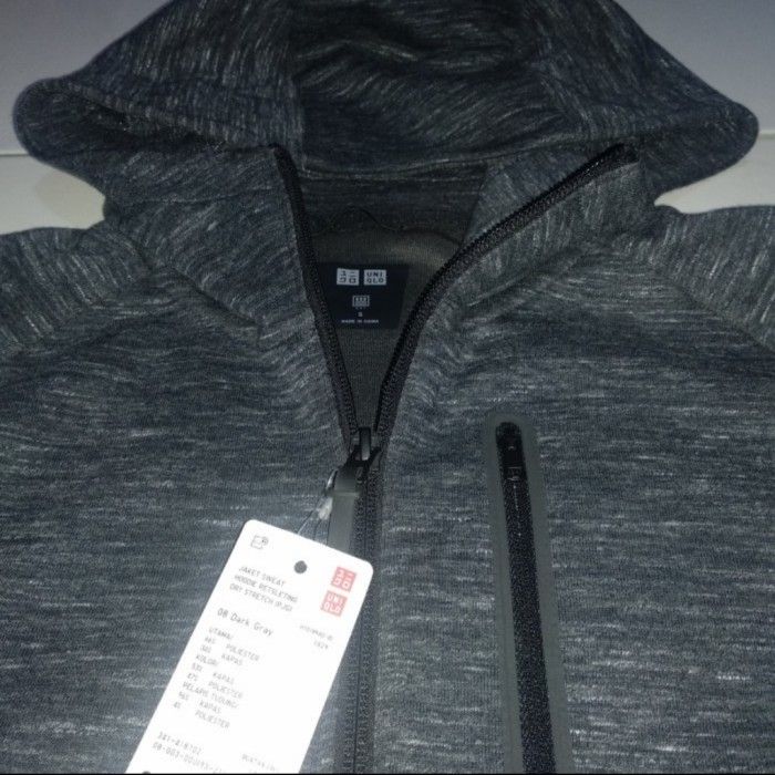 UNIQLO JAKET SWEAT HOODIE RETSLETING DRY STRETCH ORIGINAL MEN PRIA NEW - 63 Blue Size S