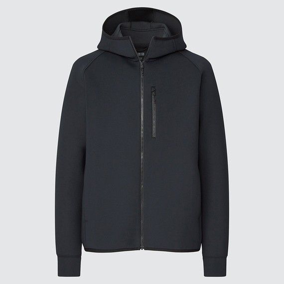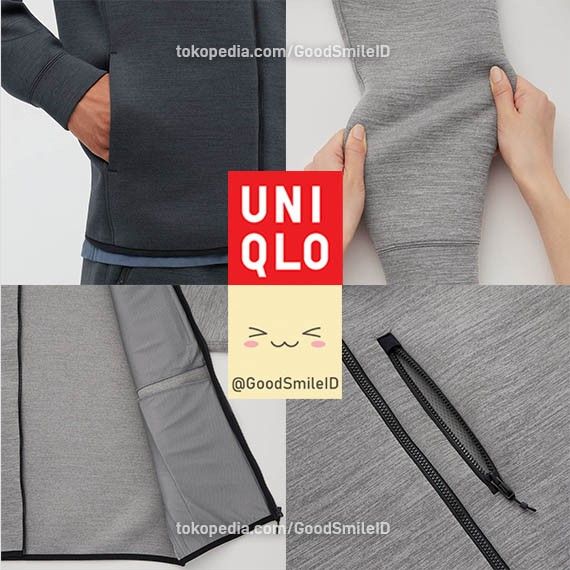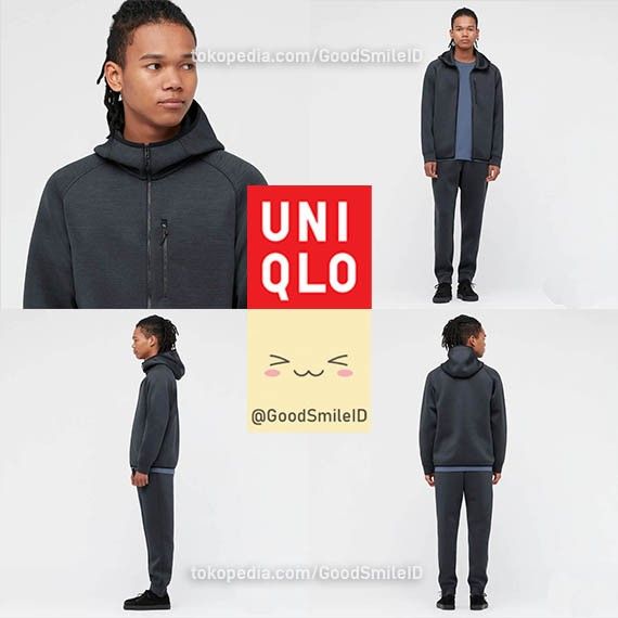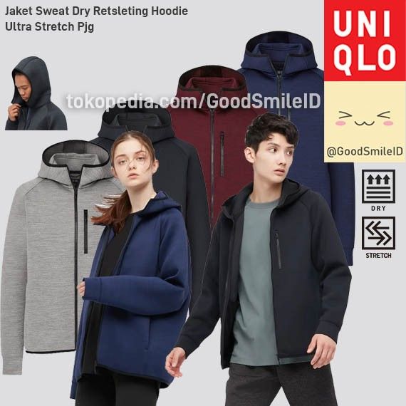 UNIQLO JAKET SWEAT DRY HOODIE ULTRA STRETCH PJG RETSLETING PRIA JASTIP - BLACK XL