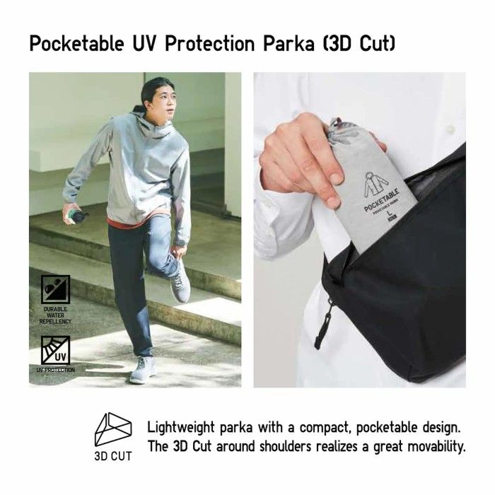 UNIQLO JAKET PARKA SAKU UV PROTECTION POCKETABLE HOODIE PRIA JASTIP - ORANGE S