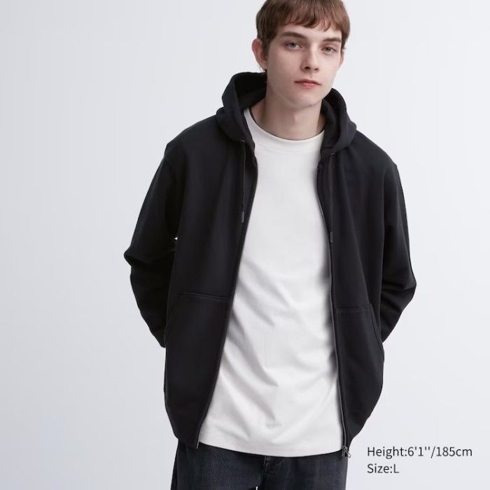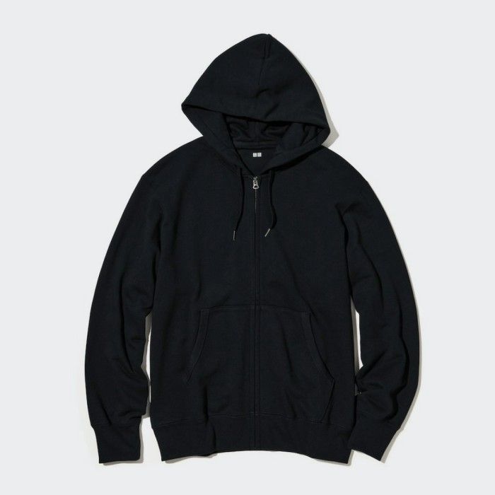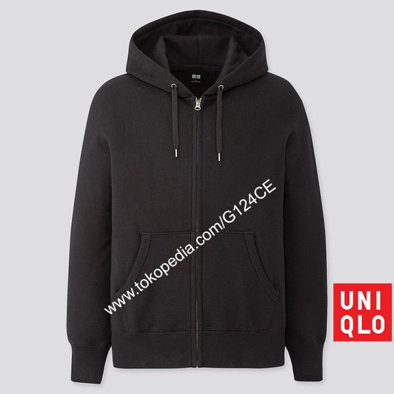JAKET PRIA UNIQLO SWEAT HOODIE RETSLETING 400330 404163 HITAM BLACK - XL