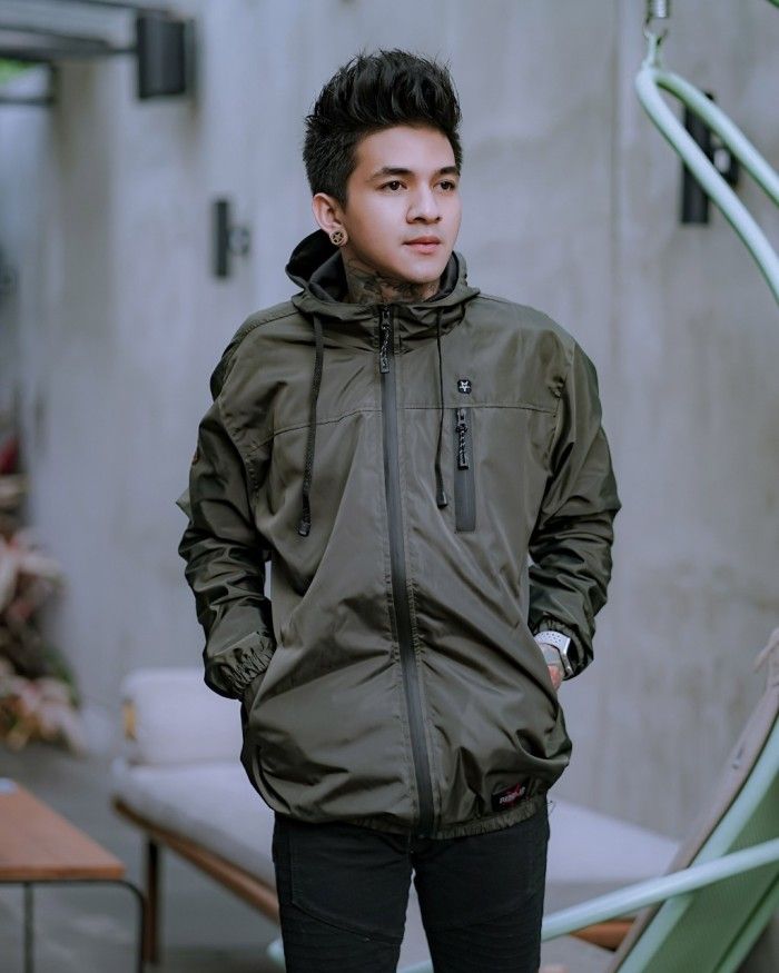 JAKET COWOK PARASUT PRIA WATERPROOF HOODIE ANTI AIR OUTDOOR PARASIT - Abu Tua L